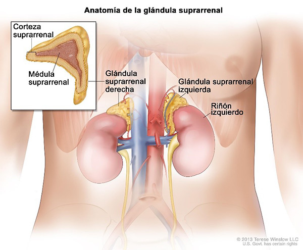 Las glándulas suprarrenales son pequeñas glándulas ubicadas en la parte superior de cada riñón. Estas producen hormonas imprescindibles para la vida. El cortisol ayuda a responder al estrés y tiene muchas otras funciones importantes, la aldosterona es fundamental en la regulación hidro-electrolítica y presión arterial, las catecolaminas colaboran en la respuesta al estrés, y los andrógenos intervienen en el comienzo de la pubertad y el mantenimiento de caracteres sexuales secundarios.
